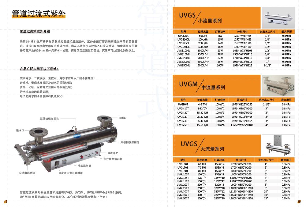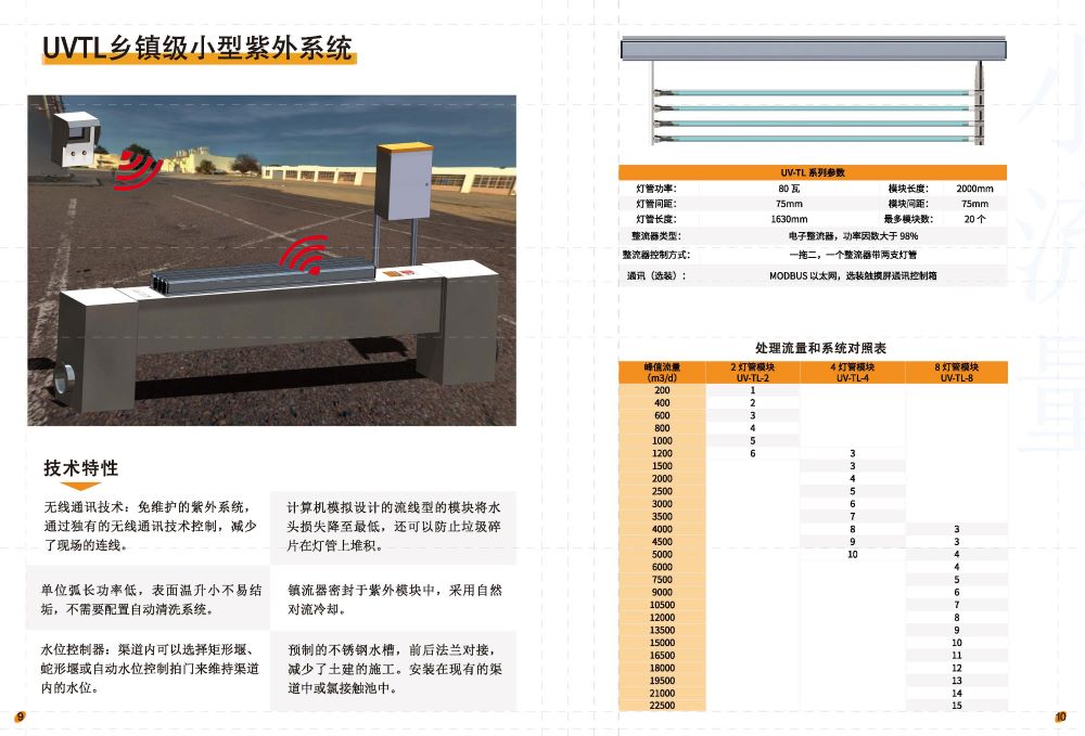 ① 系统可根据流量及进水水质的变化而实时自动调节紫外灯的输出能量来优化系统能耗,综合节约电能消耗30%;